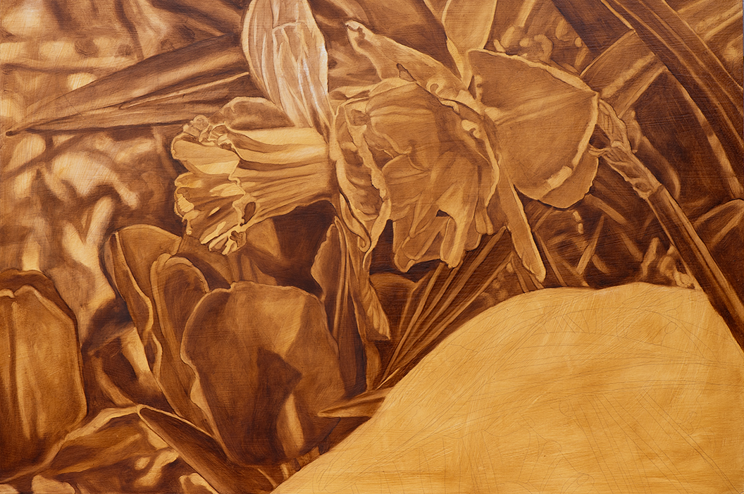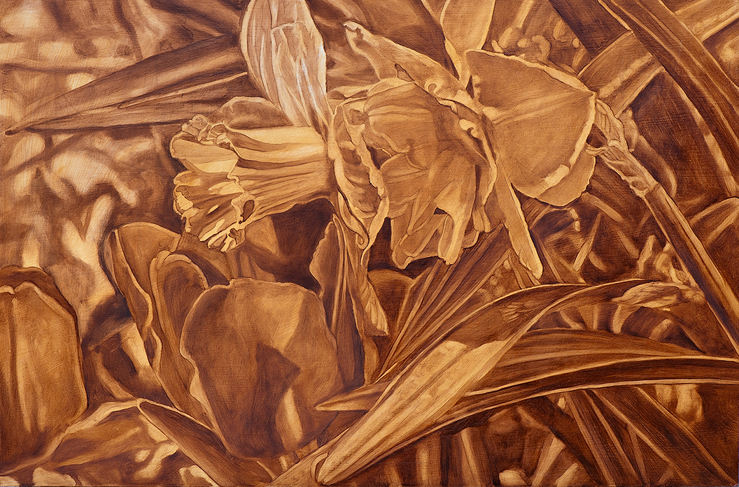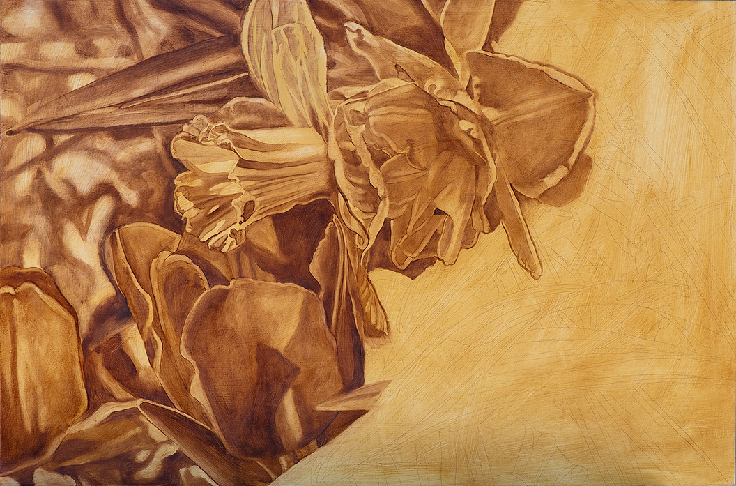 Floral demonstration using a Burnt Umber underpainting over a Raw Sienna imprimatura